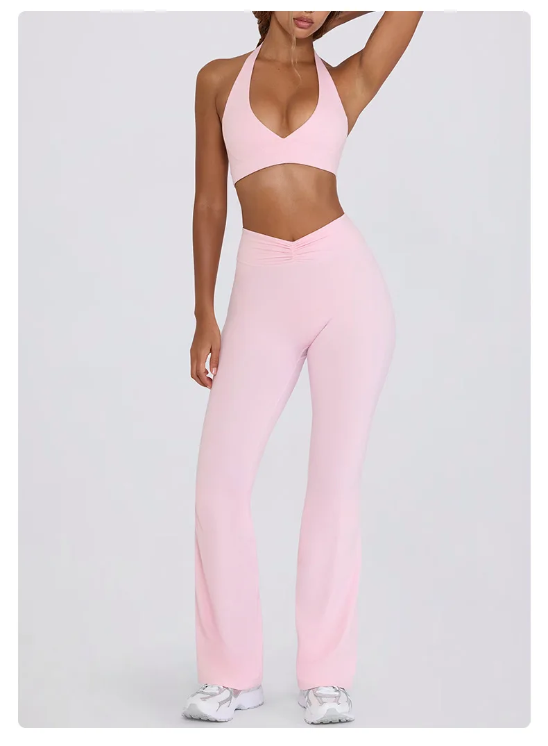 Custom Gym Wear Women Fitness Clothes High Yoga Set Breathable V-Neck Sports Bra High Waist Legging Activewear Set